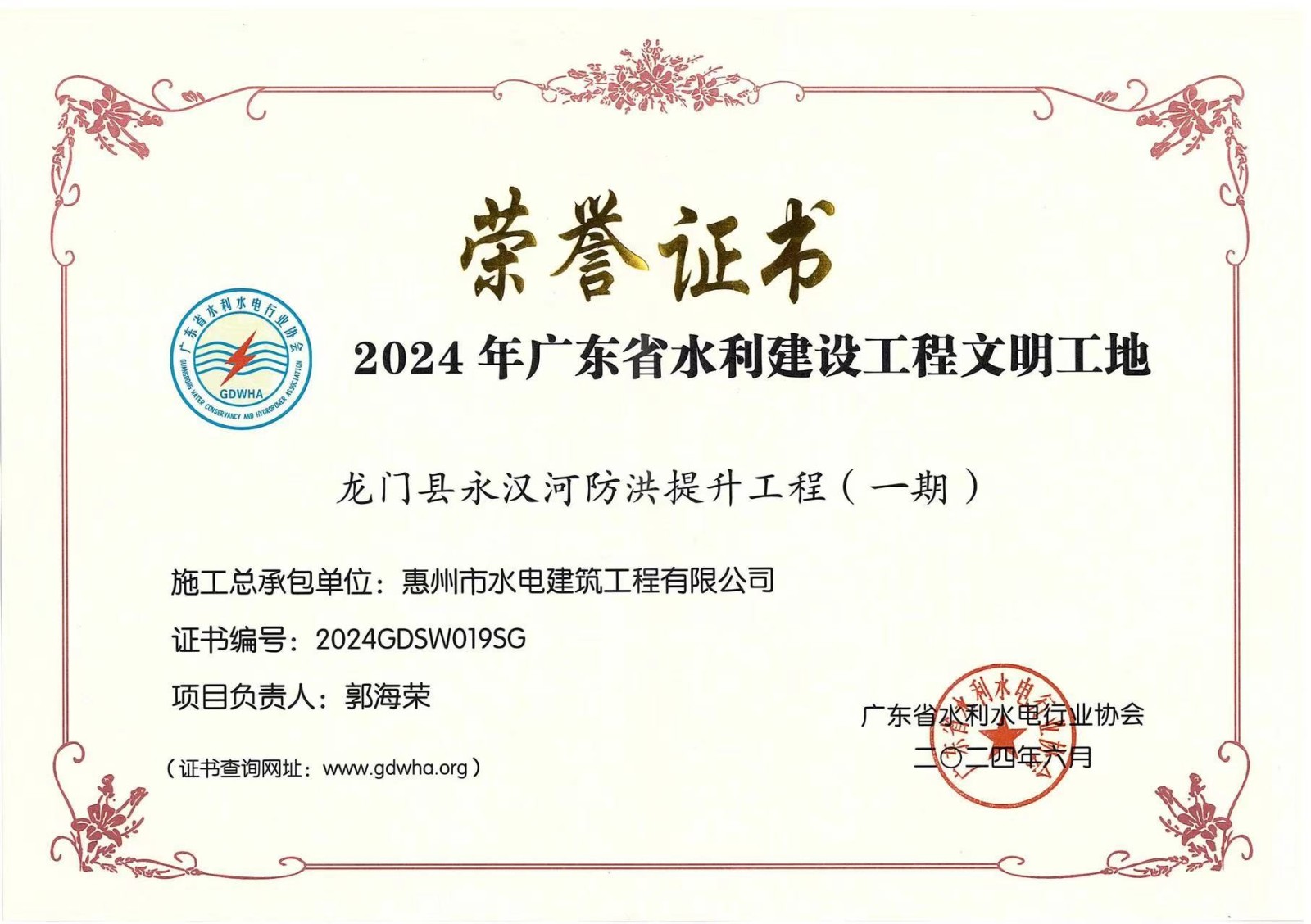 惠州市水電建筑工程有限公司成立于一九六四年四月,隸屬惠州市水務集團有限公司,是一家國有綜合性施工企業(yè),主營水利水電工程、房屋建筑、市政工程等施工業(yè)務。公司擁有水利水電工程施工總承包一級、建筑工程施工總承包一級、市政公用工程施工總承包一級、公路工程施工總承包三級,公路路基、路面及建筑裝修裝飾專業(yè)承包二級,環(huán)保工程、機電安裝、河湖整治、輸變電工程專業(yè)承包三級等經(jīng)營資質……