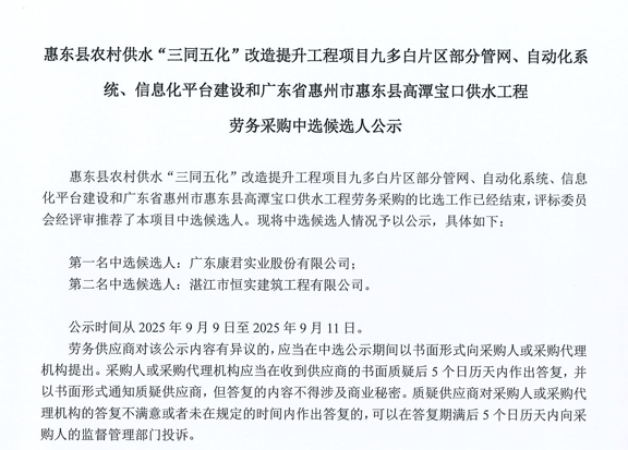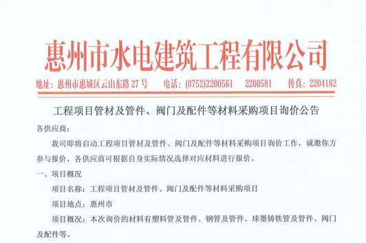惠州市水電建筑工程有限公司勞務供應商庫擴庫評審結果公示……